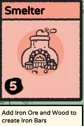 建造完成后,消耗1铁矿石+1木头,即可熔炼1个铁棒