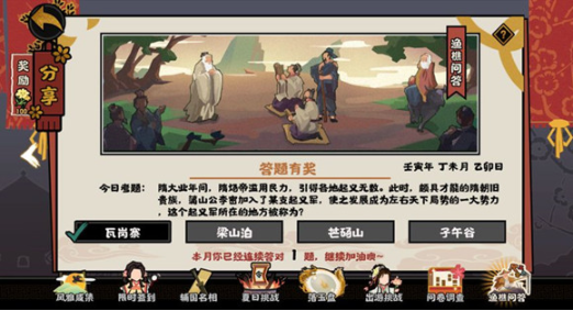 隋大业年间,隋炀帝滥用民力,引得各地起义无数。此时,颇具才能的隋朝旧贵族,蒲山公李密加入了某支起义军,使之发展成为左右天下局势的一大势力,这个起义军所在的地方被称为?无悔华夏渔樵问答07.01最新的问题以及答案目前已经是热腾腾的出炉啦!今日份的本题的难度依旧是不小的,可能对于不太了解历史知识的小伙伴们来讲,还不是很清楚吧,希望通过接下来小编的强力剧透,可以让大家很好的增长全新的姿势!