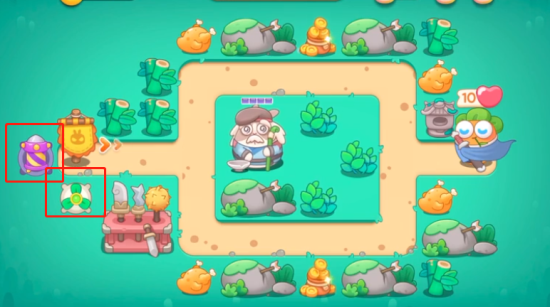 2.不断地消灭方框里面的道具,能够让你快速的获得大量的游戏金币,去升级火箭炮