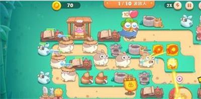 1.第一关的时候,大家可以在最下面建个一级风扇,可以帮忙减速+随机打机关,很好用。在右边位置放火炮清理障碍,障碍清除后建新火炮,这个时候专心清障碍;