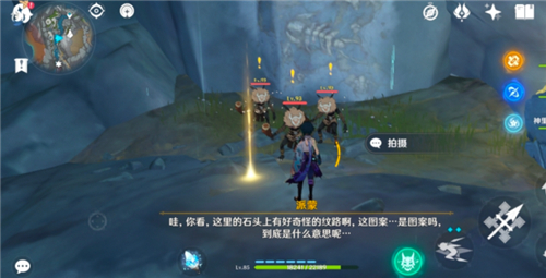2、可以看到三只丘丘人,石壁上是第二处、