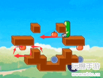 3、然后我们一直向右移动,然后从上方向左下吃掉苹果,步骤如图所示。