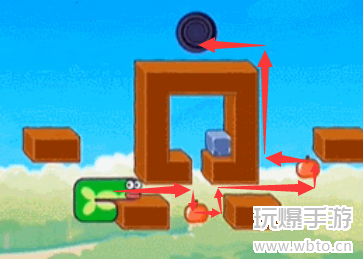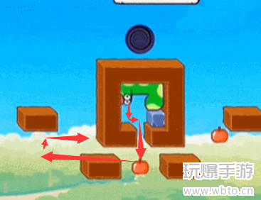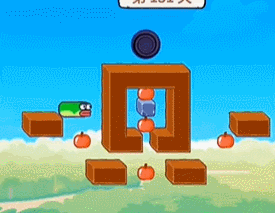 5、最后我们吃掉两个苹果后向上移动进入黑洞。
