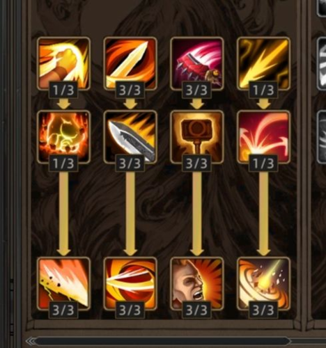 因为蛮子的技能最后四项全吃。所以加满狂暴后,技能点最后一栏那里全点满了,然后看玩的武器点满其被动,这里我是转型了,一开始也是按着攻略走刀流,后期攻城被控到流血死了不知道多少次(点名批评野马)