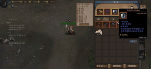 然后说说装备,锤子能用总共也就几个,前期发展去城市随便买些7级的锤用着先,因为有些锤前期就能晕人,打起来还是蛮舒服的。没点出武器被动前用刀枪也可以,十级以后可以打溶洞拿把14级的守护锤,用到雪山。毕业武器就雪山的巨人锤了。有减伤,面板高,黑泥城的秘宝锤也行,不过太后期了,而且自带的技能用不出,基本一把词条好的巨人锤能用到通关了,饰品用初雪魔戒这个没啥好说的(暴率低的离谱,我刷了一个多钟才出)然后铠甲有啥穿啥,我这里奖励是选了黑龙甲,其实拿马还好点,后期雪山套完全够用了,6周目敌人都打不动我,前期没啥好坐骑反而跑的太慢了,因为蛮子开不出技能,所以那些重甲延长主动cd的不用怕,穿硬点的就好,这游戏装备后期只要不是太拉,都能过的。词条都刷双暴就好,坐骑附魔暴伤。回蓝啥的吃个药就好,武器都是我刷出来的,可能词条不够好,不过打起来也不费力了,暴击一下7.8000