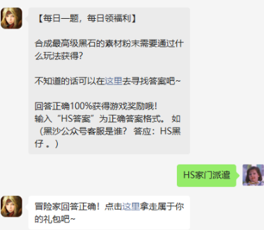 以上就是有关于合成最高级黑石的素材粉末需要通过什么玩法获得?黑色沙漠手游2022年7月7日微信每日一题答案的详细介绍啦,还没有获取到今日份游戏礼包的小伙伴们赶紧前去游戏领取吧!