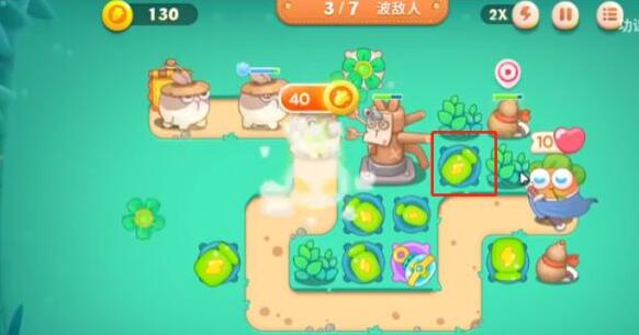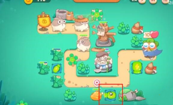 5.清除中间的杂草,增加炮台,清理兔子和道具