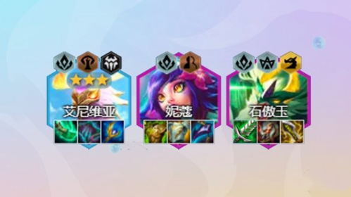 阵容组成:亚索、妮蔻、石傲玉、璐璐、巴德、艾尼维亚、纳尔