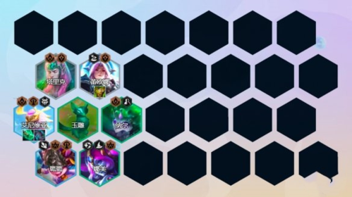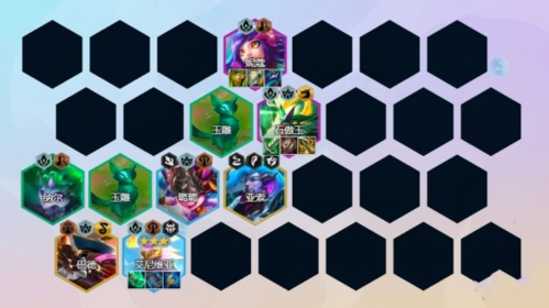 这套阵容过度平稳简单,在不太考验运气的情况下容易成型,阵容既有法系伤害也有物理输出,遇见当前版本各种主流阵容都能打,成型之后即可吃分。