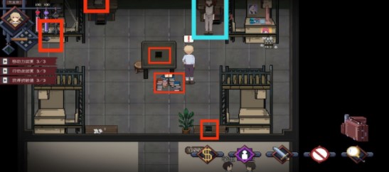 往右上是宿舍,在门前出现感叹号的地方点右下角的放大镜图标就可以进去了。