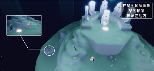 4、在禁阁神坛冥想:在禁阁顶层左边的石碑前光圈处打坐并冥想。