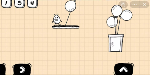 2、我们需要在大门飞离我们的视野之前,快速的跳到第二阶平台上,将门上的气球挪动一个到这个台阶上。