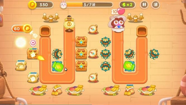 1.最开始的话,不用可以的去额外建造防御塔,升级右边的多重箭清理宝箱和障碍物