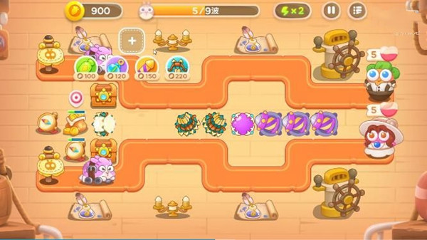 1.这一关总共设置有两条路,在中间多造几个多重箭后面还需要建造几个泡泡塔和导弹塔