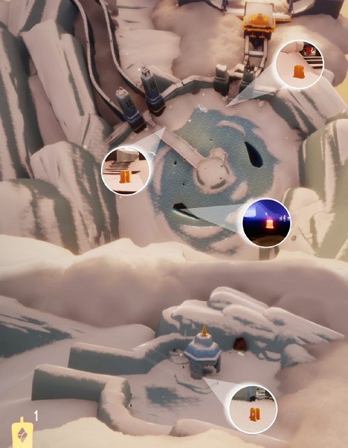 2、不知道位置的玩家们参考上图的蜡烛位置即可,每日任务开启时,碎石向导站在哪个地图前,当天的季节蜡烛刷新点就在哪个地图。