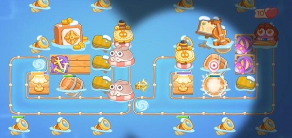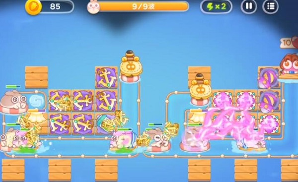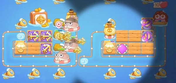 1.开局地图上会给一个船锚和2个火箭炮,火箭炮清理飞兔和道具,升级船锚
