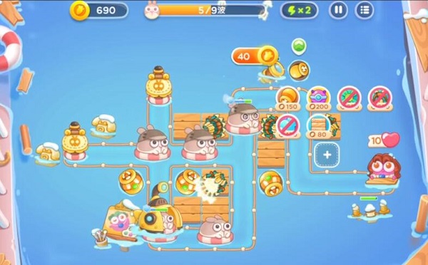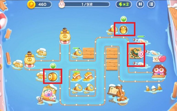 4.第6波开始先清理跑的很快的兔子,在左边出口那里放置雪球,可以减速