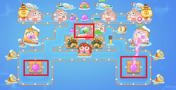 4.在上面和旁边两侧可以放水雷炮,布局如下图,无伤全清通关