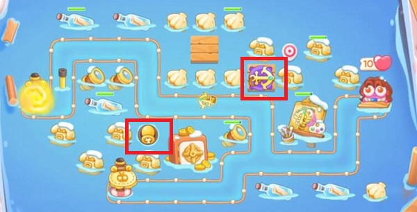3.第六波基本可以道具全清,第七波放置雪球炮,给兔子减速