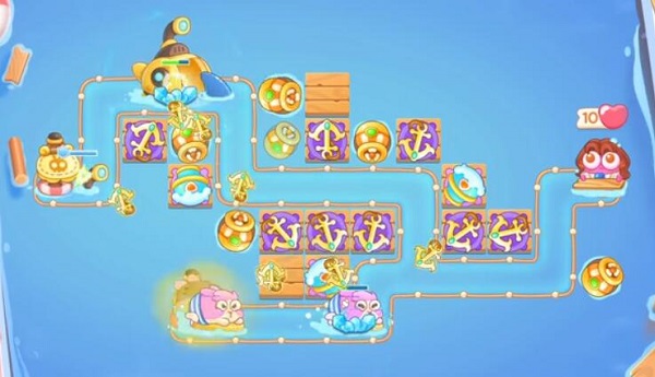 2.这一关障碍物比较多,在没有兔子时尽快清理,再增加鱼雷塔和船锚