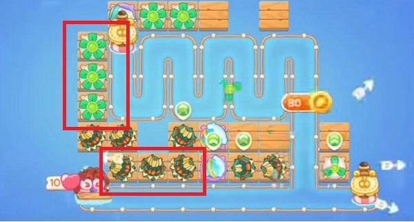 4.第4波继续在左边增加风扇升满级,最后一波在下面增加分裂箭,无伤全清通关