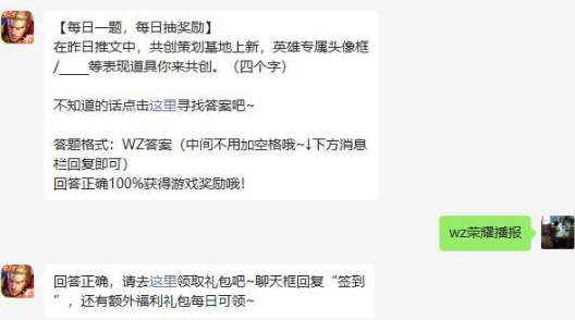 在昨日推文中,共创策划基地上新,英雄专属头像框/_____等表现道具你来共创?(四个字)?