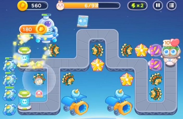 保卫萝卜4游戏全新的游戏章节——太空穿越章节的第十九关大家都有顺利的通过这一游戏关卡的考验吗?这一游戏关卡主要会使用到分裂箭、星星塔和火箭炮……注意将它们搭配好就可以顺利的通关啦!