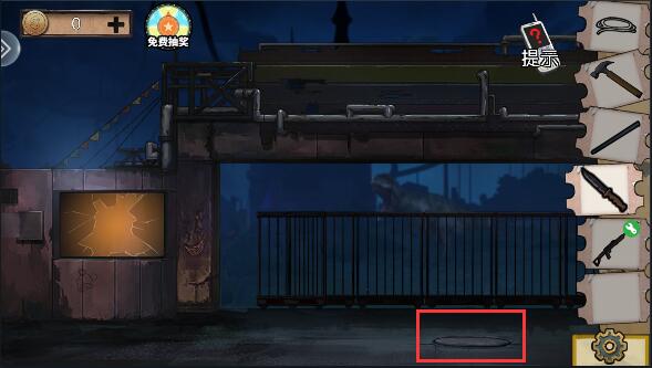 4、我们再回到第一关下水道井盖,用铁棒打开井盖即可获得电池,用电池与没电玩具枪组合。