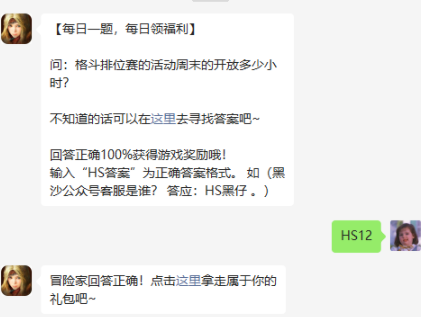 以上就是有关于格斗排位赛的活动周末的开放多少小时?|黑色沙漠2022年7月22日微信每日一题答案怎么选的详细介绍啦,还没有获取到今日份游戏礼包的小伙伴们赶紧前去游戏领取吧!