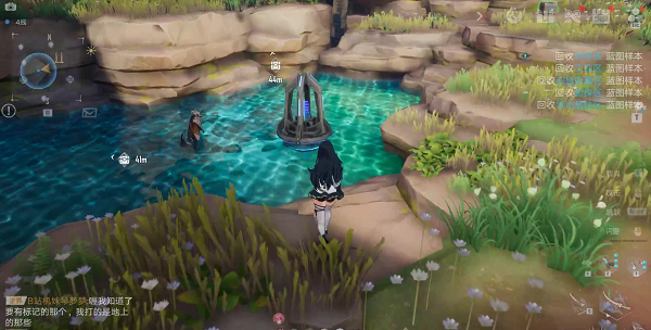 2.工业区:注意左上角小地图位置,到达蓝圈后,是一个湖,回收装置在湖旁边的岩石上。