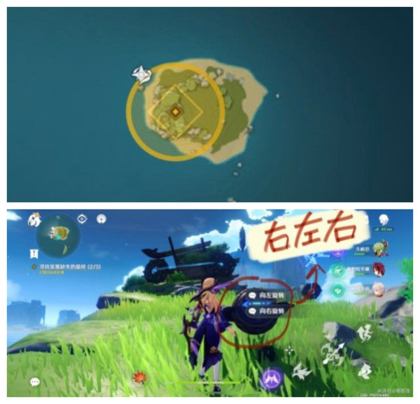 这个岛场地较大,有三个触发装置,分3p截图,注意区分周围环境特征,别弄错了。
