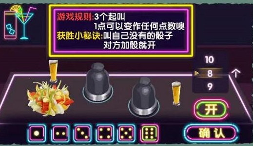 2、开局3骰子起叫,跟NPC轮流叫骰,叫了骰子的不能开骰,只有下家才行。