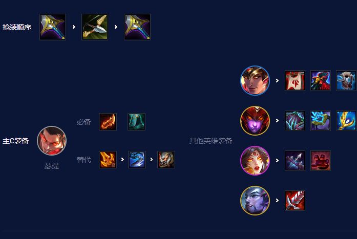 瑟提刚需鬼索的狂暴之刃,第二件先做输出装,锐利之剑和巨人捕手谁来做谁,实在没得做再考虑泰坦的坚决,第三件推荐水银免控,霞要么带偷偷,要么带轻语打破甲,洛带防装、功能装,希瓦娜最好有本莫雷诺的秘典,但不建议提前做,可以秘宝龙再找。