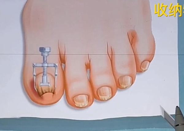 7、然后我们用镊子刮一下每个脚指头,再用喷雾。