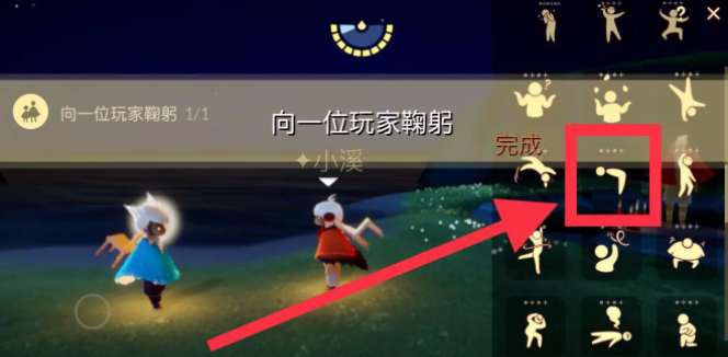 点击屏幕上方中间动作栏 面对玩家 点击并完成鞠躬动作即可
