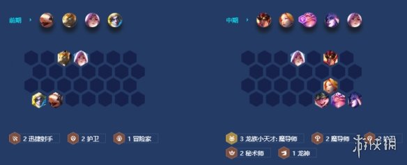 中期3-2正常拉6级,不需要D牌。中期体系牌来到之后可以直接上场去凑羁绊,比如洛和扎克来到就去替换掉场上的一星护卫。有诺姆希的话直接上场打工,携带萨勒芬妮神装,注意此时哪怕萨勒芬妮来了,在没有两星前,不要去下掉诺姆希,继续用它打工到7级,成型后再将装备给萨勒芬妮。此时萨勒芬妮有2神装后,选秀拿装备就不要再为萨勒芬妮准备了,而是要优先拿男枪的输出装,否则7级成型阵容会缺乏伤害,难以锁血。