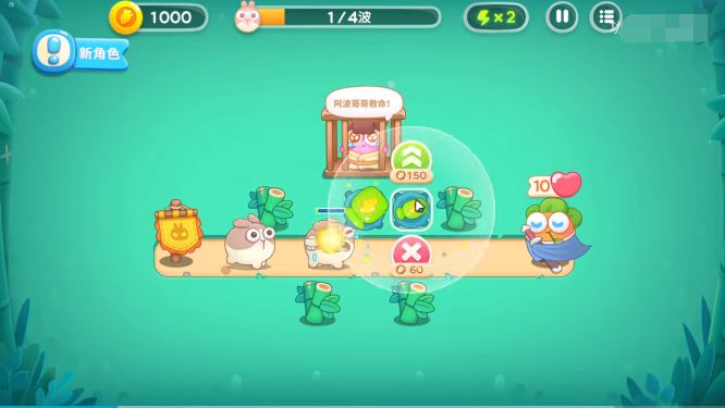1、将炮塔先种下去,医工种植三个炮塔。将其升到满级。点击后面的笼子先去将笼子打破救出萝卜妹妹。