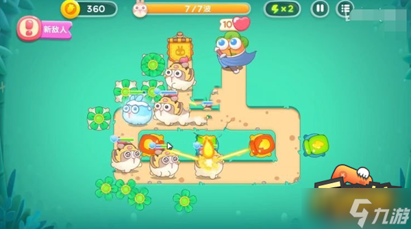 5、紧接着就是最后一波,在这里尤其要小心冰冻兔,万一它控住很多炮塔就难办了。