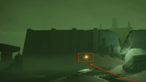 首先进入墓土大门,降落到第一章地图。径直往前走,来到入口前的水面处。然后就可以看到星光就在这一块区域飞。需要耐心观察下星光的飞行轨迹。