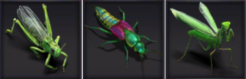 狩猎【蝗虫、隐形虫、绿巨螳螂】,可获得植物资源;