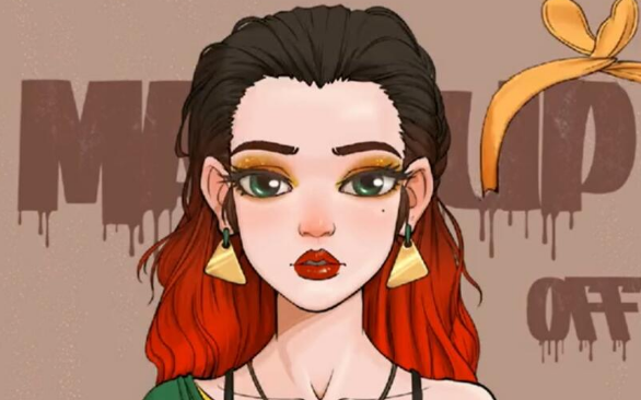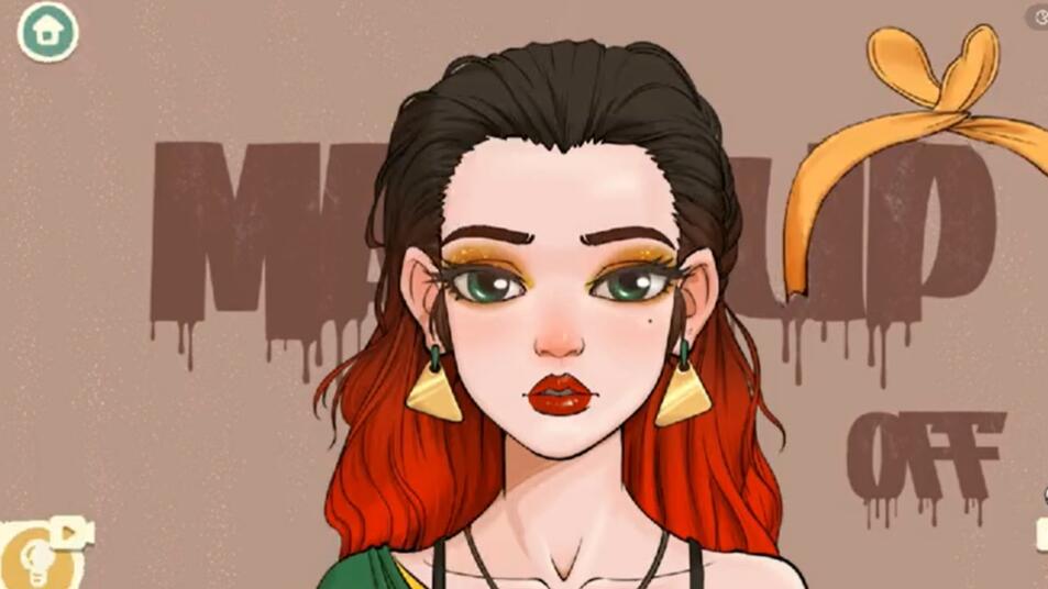 5、最后我们戴假睫毛,涂上腮红和口红,再戴上耳环,取下发带即可过关。
