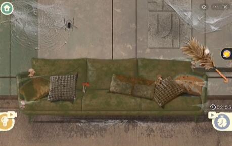 5、最后我们把房间擦一下,把靠枕摆放好即可过关。