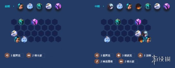抢节奏升人口, 1-4拉四、2-2拉五、3-1拉六。 一般情况都能在3-5七(经济积累的很快)然后小搜一点质量。补一个神龙尊者,提升卡莎输出。 4-2拉八人口,大搜卡钱花完,把阵容凑齐即可。星界龙加碧波龙的经济足够支撑到八。 八人口阵容成型后,四阶段基本可以吃个大连胜。等到索姆两星落就可以存钱,够钱以后果断拉人口。上巴德或者索拉卡。