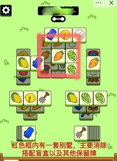红色虚线框内卡牌尽量保留 ,特别是最后一两层,以及盲盒留三四张到后面,至少要留到正方形消一部分才能动。