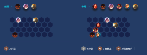 在最新版本的改动中,赛娜和四炮手都得到了增强,也就是说强袭炮手阵容将会在排位中有一席之地,而本套阵容的核心运营思路在于3-1阶段快速搜到三星赛娜和一张低费卡护卫后转连胜路线上人口,后续就是补开四护卫和四强袭炮手,如果可以升到九人口可以补巴德和索拉卡或者用二星泰拉+二护卫作为阵容前排,需要注意的是面对龙神阵容以及刺客阵容会大概率被暴打