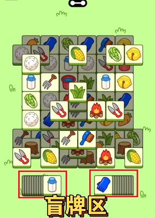 4、盲牌区前期可以消除几张,但不要用太多了,前期还是要以消除核心区的牌为主。