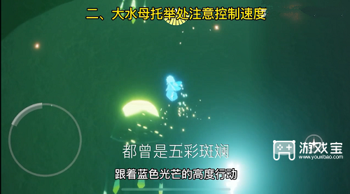 4、到达观鱼台后会被动画固定在一个位置上面,这时候会有一群小水母飞过来拖着你走,在此期间不需要任何操作,跟着看剧情就行。