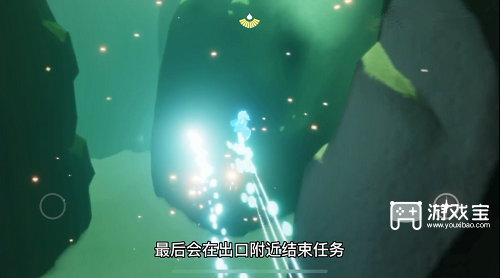 5、到达蝴蝶洞后看完剧情,会再有一次水母托举的过程,这里和前面一样,跟着光芒高度走,后面基本就是欣赏剧情了,最后会在交任务二时出现一个大舞台,看完就结束了任务二。