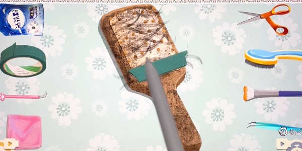 1、首先我们用剪刀把梳子上头发剪掉,剩余头发我们用绿色胶带粘下即可。