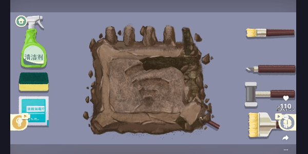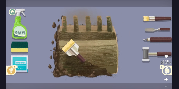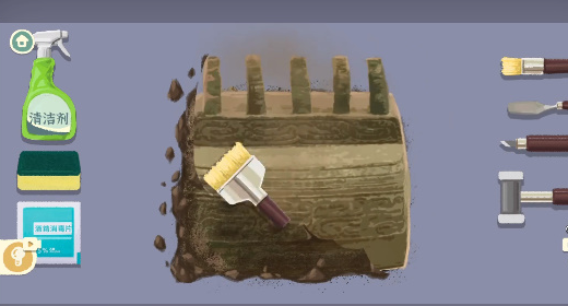 3、然后我们用斜铲刀清掉泥土,用小刷子刷去灰尘。